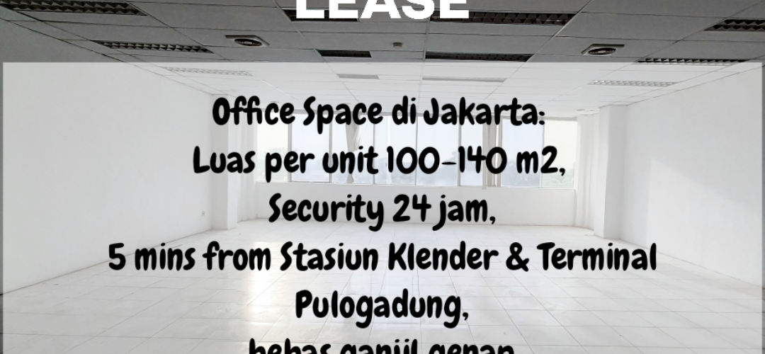 Sewa ruangan Executive Suite kondisi bare atau unfurnish untuk office space, luas 100 m2 – 136 m2. Cocok untuk co-working space, ruangan staff dengan team size 40-an orang. Lokasi gedung berada di jalan raya, Jakarta Timur, bebas ganjil genap, aman … Lanjutkan membaca Sewa Termurah Office Space Executive Suite di Jakarta Kondisi Bare